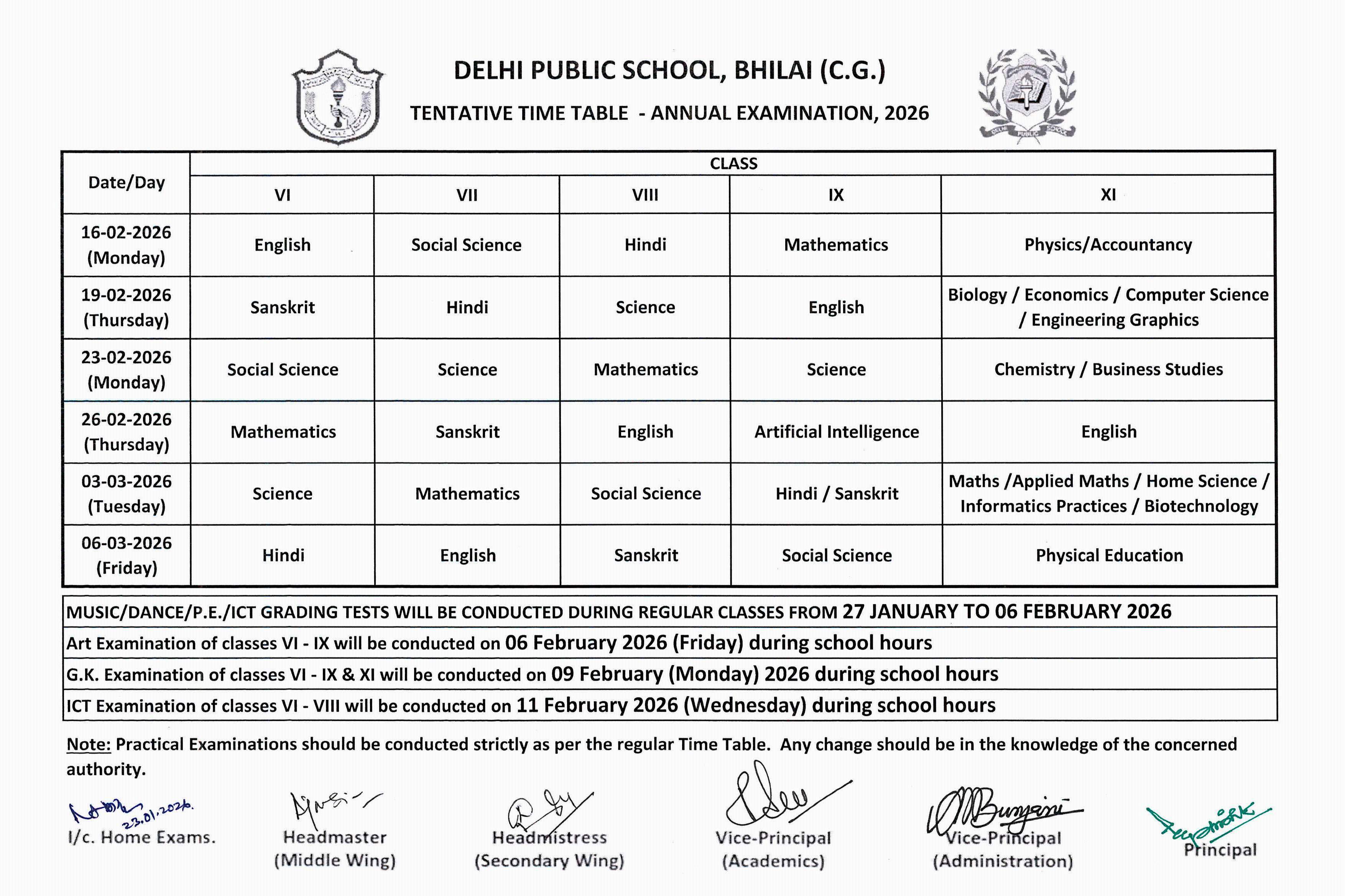 FINAL TERM-2026 TIMETABLE (CLASSES VI - IX & XI) FINAL TERM-2026 SYLABUS: VI, VII, VIII, IX PREVIOUS YEARS FINAL TERM QUESTION PAPERS CLASS VI : 2025, 2024, 2023, 2022, 2021, 2020 CLASS VII : 2025, 2024, 2023, 2022, 2021, 2020 CLASS VIII : 2025, 2024, 2023, 2022, 2021, 2020 |